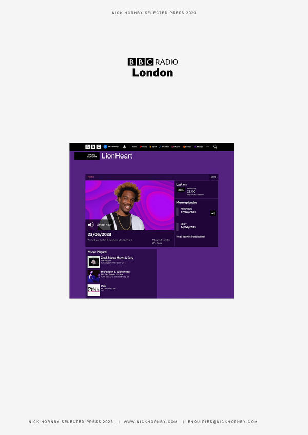 BBC Radio London: Nick Hornby interviewed by Lionheart